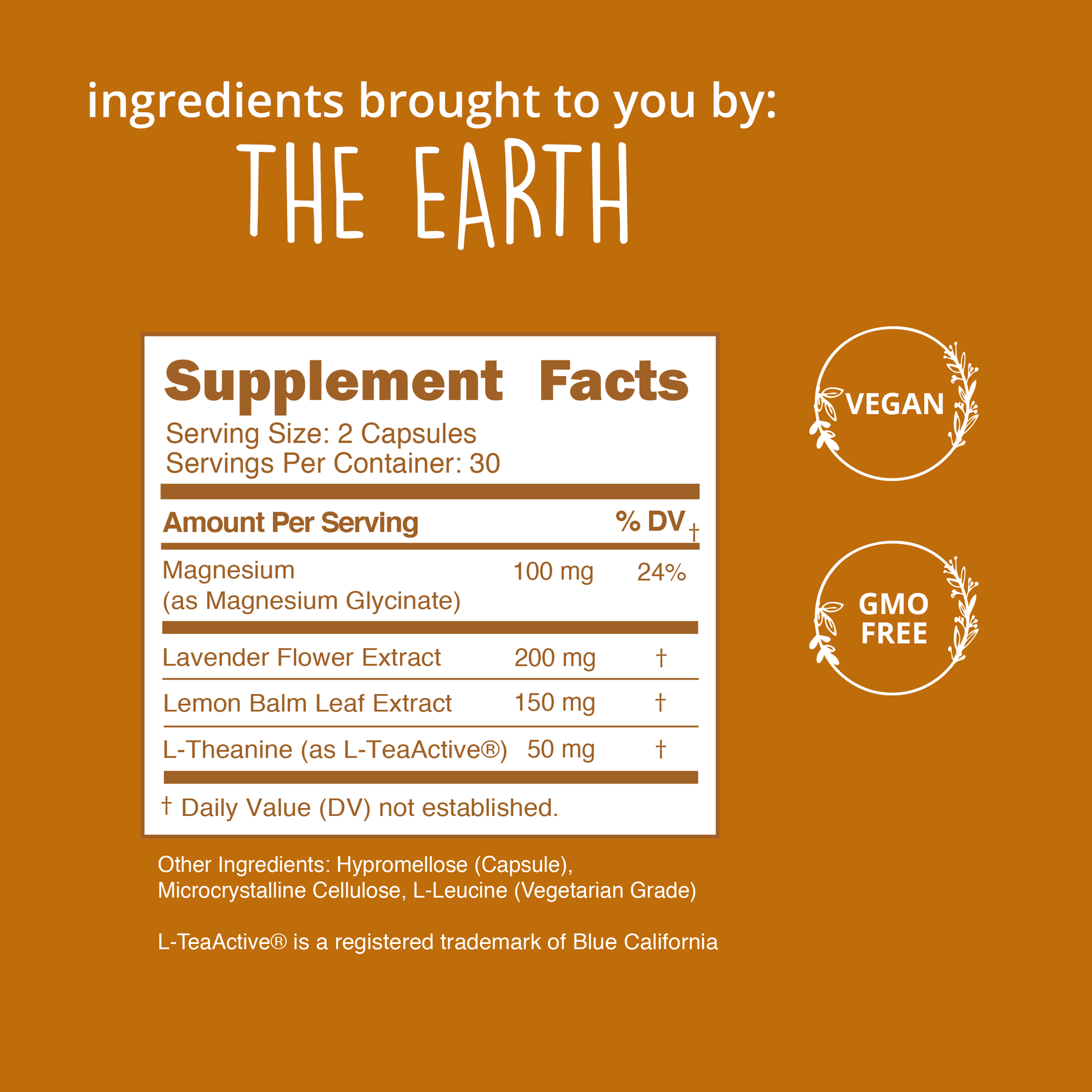 Be Grounded is a plant-based supplement that supports you by: * Providing you with fast-acting relief from stress and anxiety * Uplifting your spirit by keeping you happy and present * Relaxing your body - both physically and mentally * Calming ingredients - Lavender, Lemon Balm, and L-Theanine