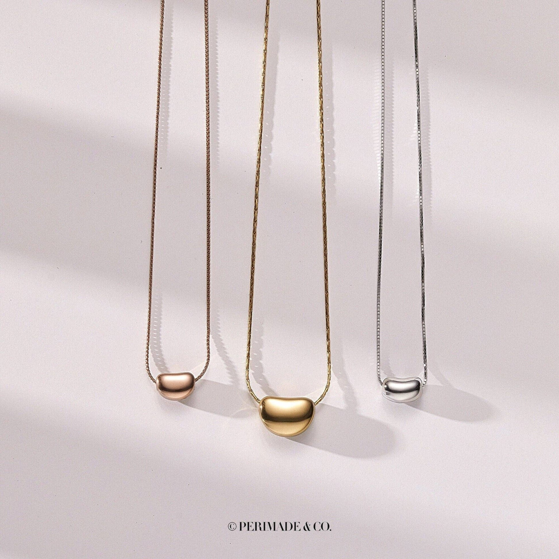 Description & Details Beans are one of the most symbolic images we can dream of. Beans in dreams represents growth and success. In the Bible beans represent luck and happiness. * Material: Solid 925 Sterling Silver ∙ Titanium Stainless Steel * Finish: Hypoallergenic ∙ Gold Plating * Dimensions: 6 x 9 mm for small bean, 10 x 13 mm for large bean, 16 - 18 inch chain, adjustable * All our work is custom made by hand with love