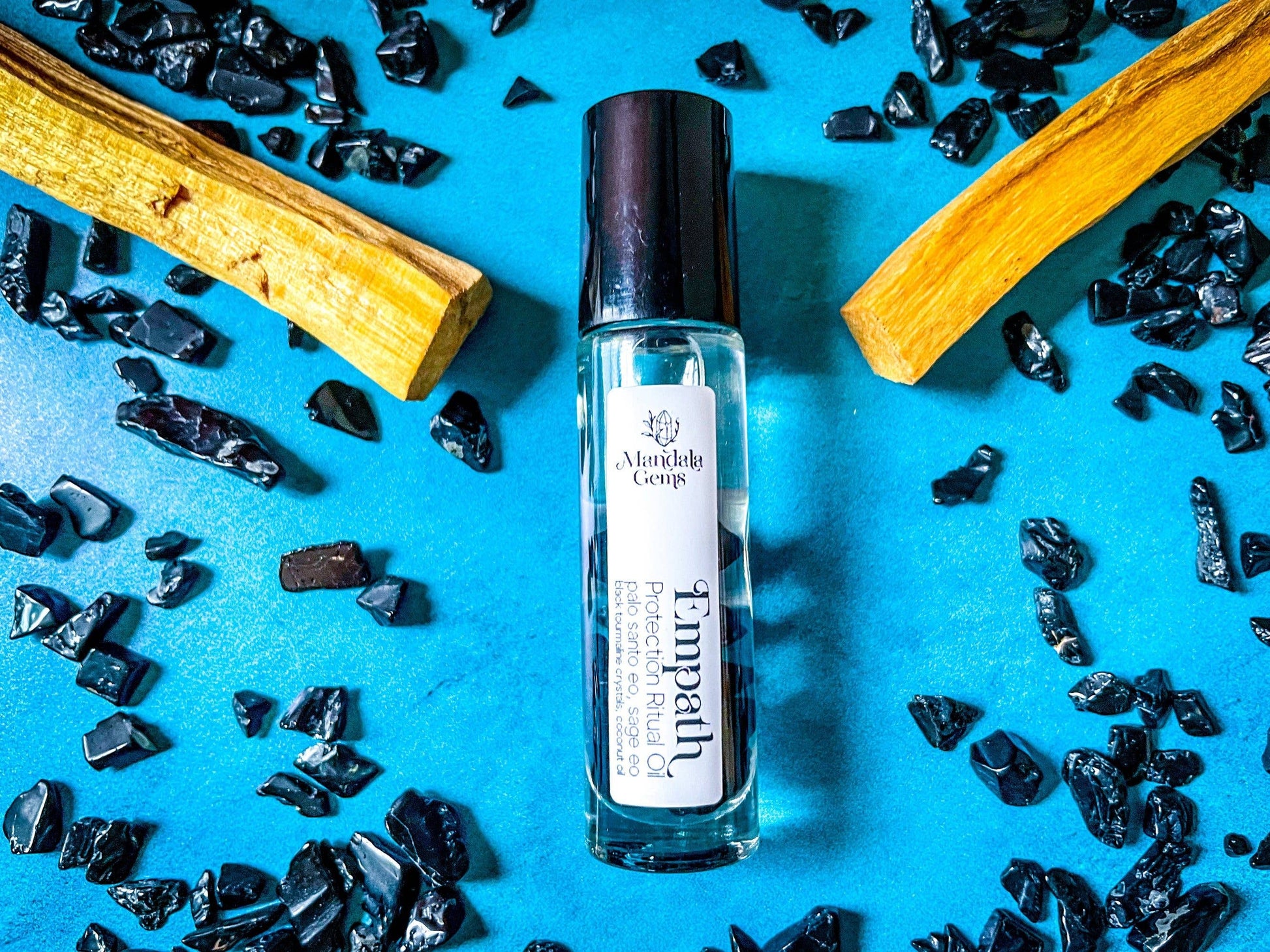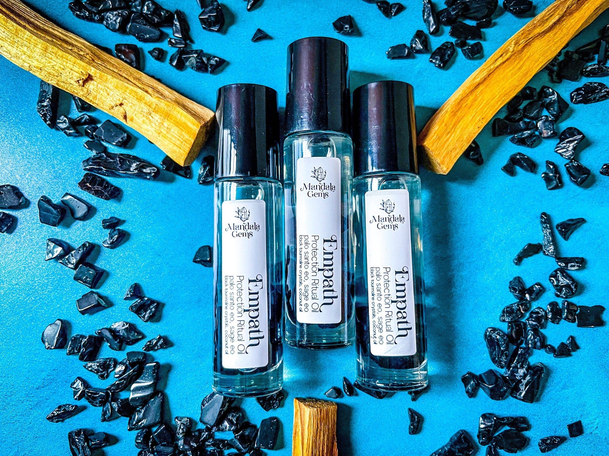 Introducing our Empath Roll-On, crafted with Black Tourmaline Crystals, Palo Santo and Sage. Roll on your wrists and neck whenever you could use some extra protection + soothing energy. As an Empath myself, I know first hand how difficult and downright stressful it can be being around other people's energy. It is common for Empathic people to quickly feel anxious, drained + exhausted by the tumult of the energies around us. This is because we FEEL everyone's energy, good or bad. Anointing yourself with this will hold you in a protective space and help keep you protected from all this. This Perfume has been in the works for sometime and is made with the same formula as our Protection spray ~100% Pure Essential Oils, Crystals and lots of energy is in each bottle!